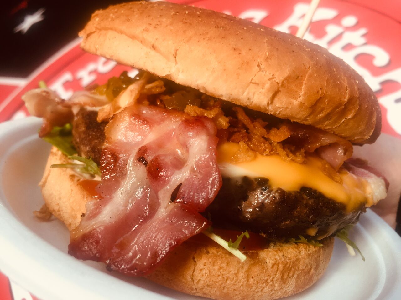 Vanuit onze foodtruck serveren wij namelijk niet enkel home made burgers zoals Black Angus burger,Pulled pork,Philly cheesysteak sandwich ,P’boy scampi maar ook super lekkere een sappige cheese(bacon)burgers ,wraps en pasta.